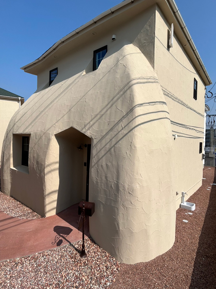 エイジング塗装を施して、玄関扉や窓枠と同じ色味でアンティーク感を表現しましたので、昔からここにあったよう雰囲気を感じていただけたらと思います。