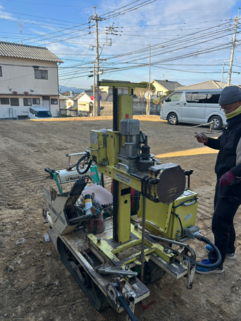 解体工事をおこなっていた中間の現場では地盤調査に入りました。