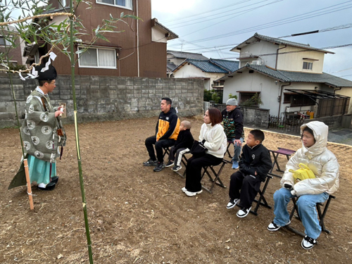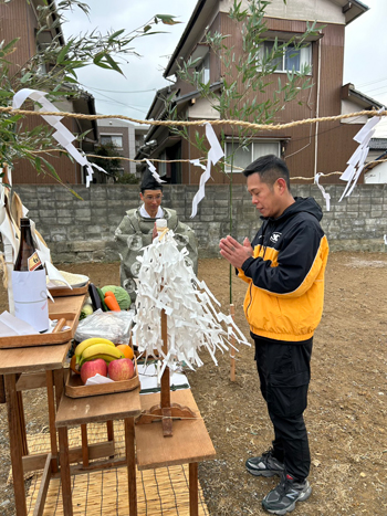 土地の神様への挨拶も無事に終わりまして工事の安全を祈願しながら、2026年の年明け早々に着工を開始させていただきます。