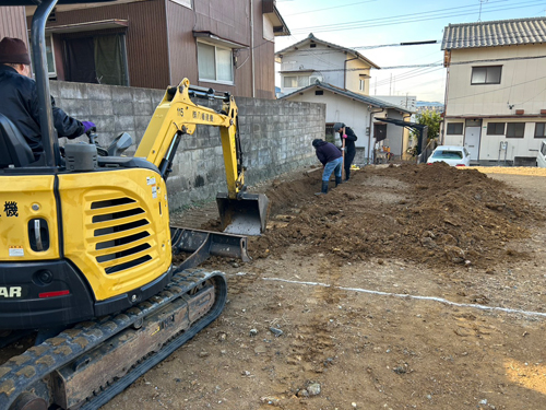 また東区の戸建賃貸の現場では、外構の下地工事に入りました。
