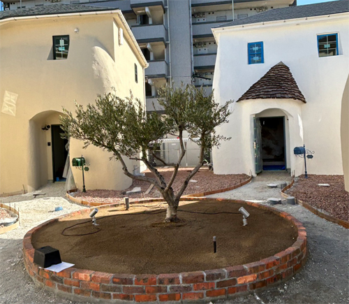 また外構の下地工事に入っていた東区の戸建賃貸の現場では、村のシンボルツリーになるオリーブの木を植えました。