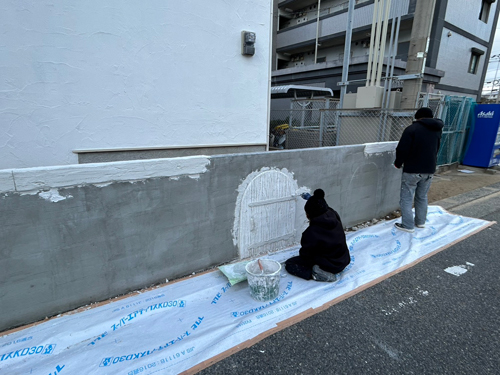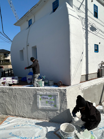 また内部では玄関入ってすぐの正面の壁の造形工事を進めていました。