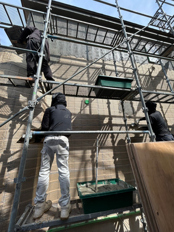 基礎の巾木塗りなどをおこなっていますので、外部の作業も進めさせていただきます!