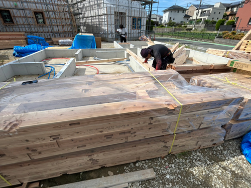 土台敷きとはコンクリートの立ち上がり部分に土台の木材を設置して、1階の床の骨組みを作る重要な作業になります。